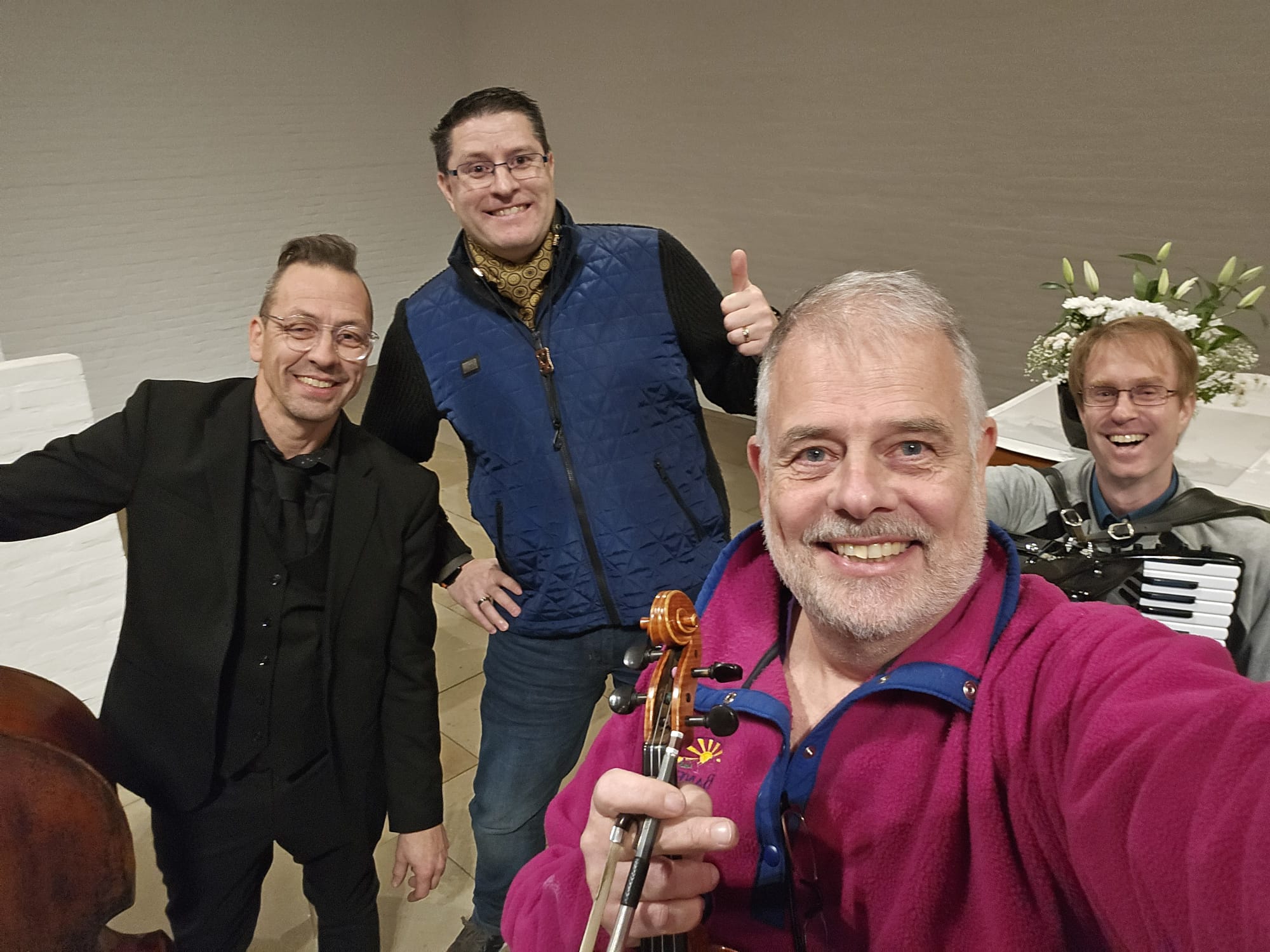 Wir sind die Tacheles Klezmer Band – vier Musiker, die den lebendigen Sound der osteuropäischen Klezmer-Tradition mit Herz und viel Spielfreude auf die Bühne bringen. Mit Klarinette, Violine, Akkordeon und Kontrabasserzählen wir Geschichten zwischen Lachen und Weinen, mal melancholisch, mal ausgelassen tanzbar.